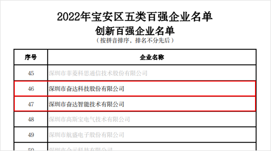 1月6日,深圳市宝安区工业和信息化局发布关于印发《2022年宝安区五类百强企业名单》的通知(下称:通知),通知公布了宝安区工业、增加值、服务业、外贸、创新等五类百强企业榜单。太阳成集团网址已连续多年登上该榜单,今年再度荣登工业百强、增加值百强、外贸百强以及创新百强(不包括太阳成集团网址业务未涉及的服务业百强)等四项榜单。值得一提的是,太阳成集团网址旗下子公司——深圳市太阳成城集团智能技术有限公司今年也登上了创新百强榜单。可见,公司的整体实力经过综合评估,获得了相关部门的认可。