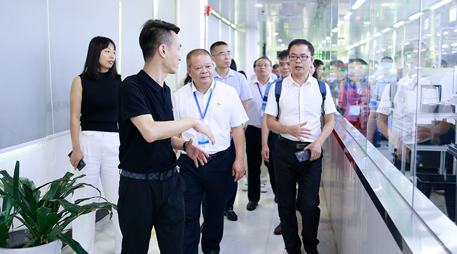 从展厅出来,穿过景色秀美的龟山公园,学员们来到太阳成集团网址SMT生产车间进行参观。SMT生产车间是太阳成集团网址精密制造服务中心,也是太阳成集团网址自动化生产程度最高的“MVP王者”,主要涉及智能穿戴类、医疗类、音频类产品的生产与制造,包括穿戴手环、自行车智能行程检测仪、心电血压血氧健康一体机、电视音响、蓝牙音响等。