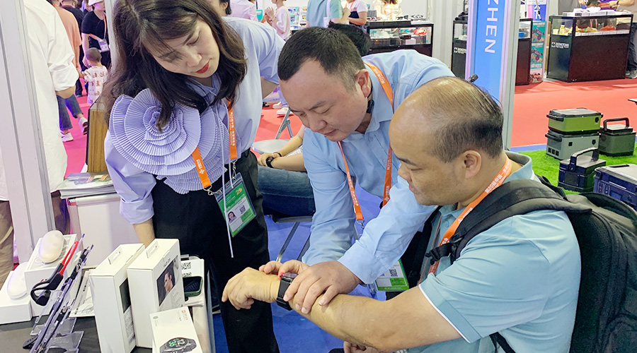 太阳成集团网址全自研算法检测血压的智能手表Gamma Watch 在展会期间也大放异彩,不少东南亚国家商会的代表都对Gamma Watch内置的气泵血压检测技术表示出相当大的兴趣,现场体验后对于其测量的准确度、佩戴的舒适度表示认可。