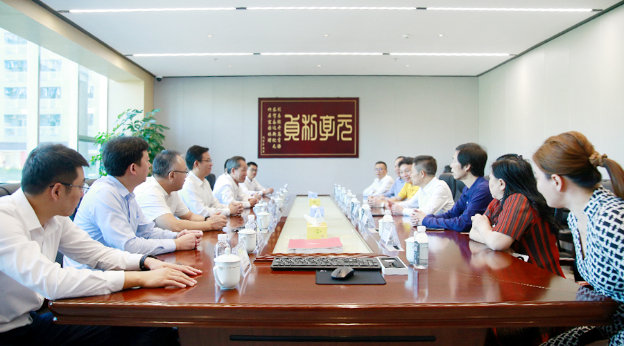 结束参观后,双方举行了座谈会议。肖董首先对茂名市委领导的到访表达了热烈的欢迎和诚挚的谢意,随后汇报了深圳市茂名商会近年来在深圳的发展状况及投资情况。紧接着,双方围绕招商引资、助力家乡建设等议题展开了交流与探讨。