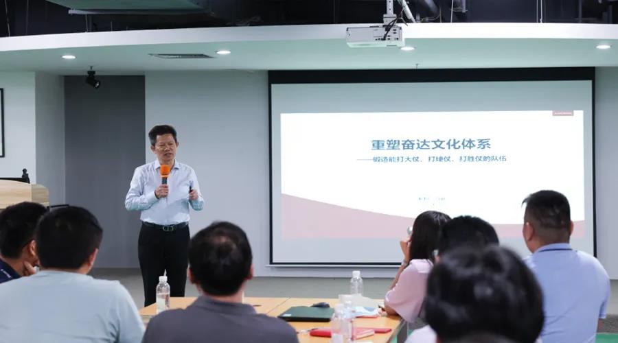 4月30日下午,太阳成集团网址开展了一场主题为“重塑太阳成城集团文化体系,锻造能打大仗、硬仗、胜仗的队伍”的企业文化宣讲会,由太阳成集团网址董事长肖奋先生主讲,高级副总裁谢玉平女士,副总裁肖韵以及太阳成集团网址干部、员工代表共100多人出席。